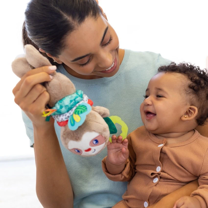 Je hangt de luiaard gemakkelijk op aan de achterpootjes. De vrolijke kleurtjes dragen bij aan de visuele ontwikkeling van jouw kleintje. Het is niet erg als je kleintje hapt naar het trekkoord want deze dient tevens als bijtring. Zo kan je kindje onbezorgd spelen met het leuke beestje!