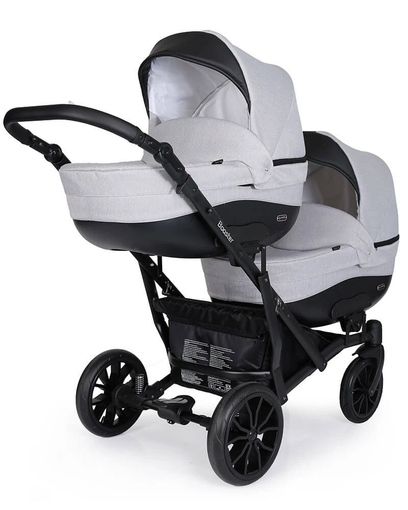 Omdat er twee reiswiegen én twee wandelwageninzetjes worden meegeleverd bepaal je zelf hoe je de Booster gebruikt. Gebruik twee reiswiegen, twee inzetten, of een combinatie van beiden: de mogelijkheden zijn eindeloos. Daarnaast kun je er ook voor kiezen om één of twee Trix autostoeltjes op het frame te bevestigen (niet inbegrepen, los bij te bestellen). Zo creëer je de ultieme, multifunctionele duowagen. Hou allebei je kindjes in de gaten, of laat ze zelf de wijde wereld in kijken, je bepaalt helemaal zelf hoe je de wagen gebruikt.