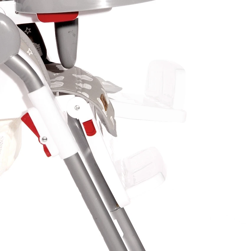 De kinderstoel is zeer comfortabel voor je kleintje, de rugleuning en de voetensteun zijn in meerdere posities te verstellen. Ook de zithoogte kun je in meerdere standen verstellen, zo is deze stoel geschikt voor vrijwel elke eettafel. Je kleintje zit zeer veilig in deze stoel vast met een 5-punts veiligheidstuigje en de stoel beschikt over een tussenbeenstuk. Gebruik je de stoel even niet, dan klap je hem zeer eenvoudig in en berg je hem compact op.