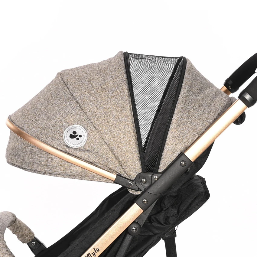 Je kleine zal heerlijk om zich heen kunnen kijken in de Myla. Is hij/zij toe aan een dutje? Dan kun je de rugleuning verstellen tot een ligstand. In de Myla zit je kindje ook veilig. De wandelwagen heeft een valbeugel, die tevens ook afneembaar is, en je kunt je kleine vast zetten met de 5-punt veiligheidsgordel met zachte kussentjes.