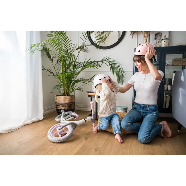 De Mimi helm is veilig, comfortabel en licht van gewicht. De binnenkant is voorzien van schuimrandjes voor extra comfort. Dankzij de verstelbare draaiknop achterop de helm is hij verstelbaar van 47 tot 58 cm, zodat je hem aan de vorm van het hoofdje van je kind aan kunt passen en de helm goed aansluit. Tevens is het riempje verstelbaar.