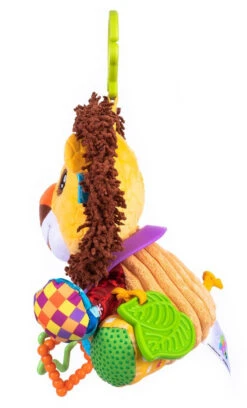 De geluidjes en muziekjes stimuleren het auditief systeem van je kleine. De pootjes en oortjes van de kat hebben een andere soort stof wat zacht aanvoelt voor je kindje. De verschillende vormpjes en tekentjes op het knuffeltje zien er nieuw en interessant uit en het hartje als neusje maakt het helemaal af.