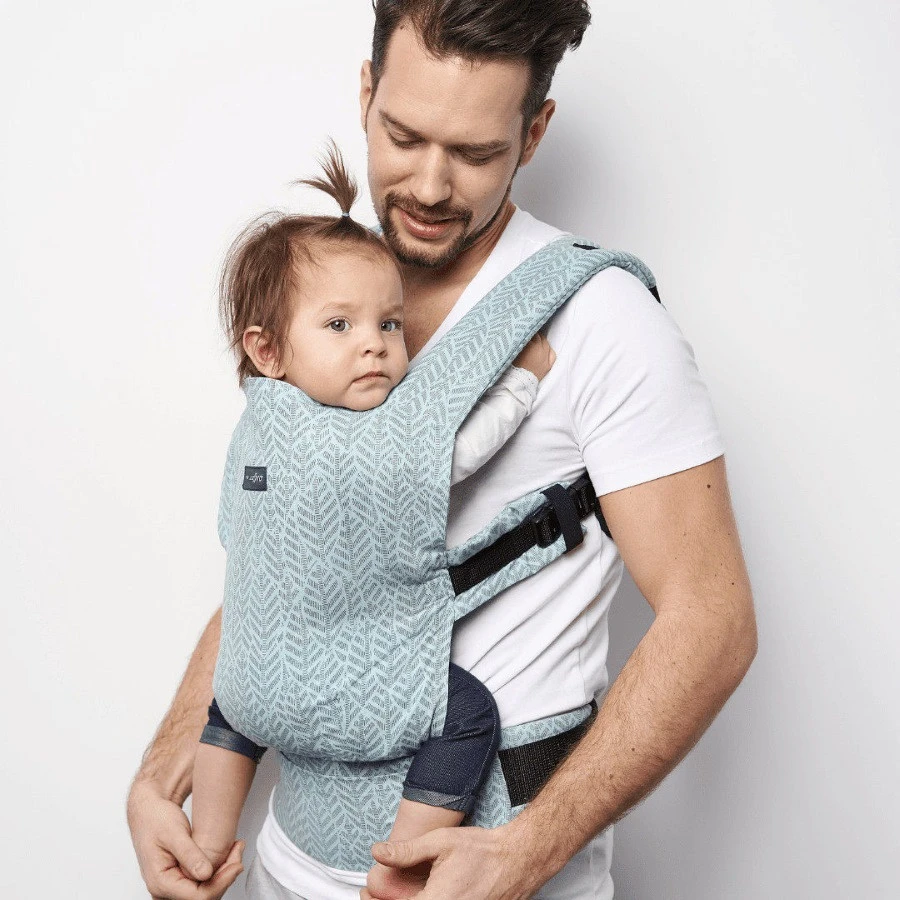 De draagzak is zowel als aan de voorkant als achterkant te dragen. Onderaan de draagzak zit een comfortabele heupband die om de middel van de ouder bevestigd kan worden met een gesp. Door deze band wordt het gewicht van je kleintje gelijkmatig verdeeld en is het dus minder zwaar voor de ouder. De band is verstelbaar van 65 cm tot 140 cm.